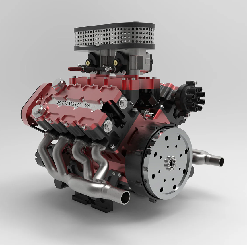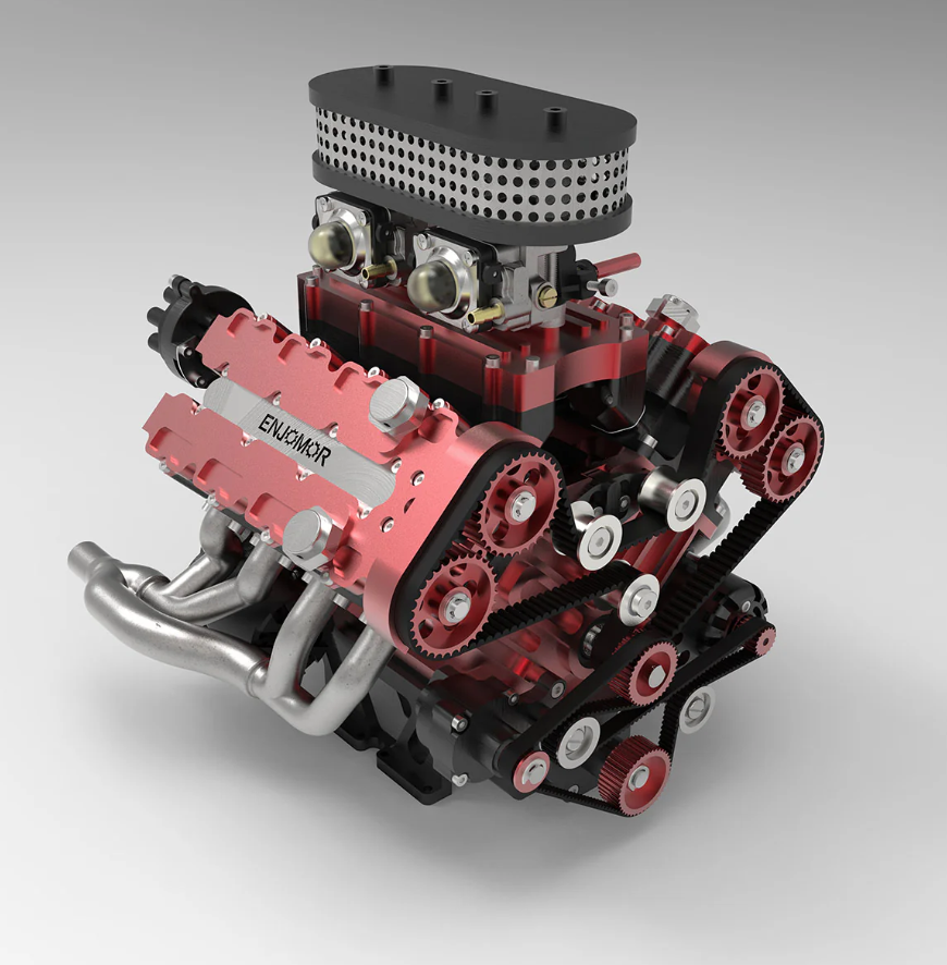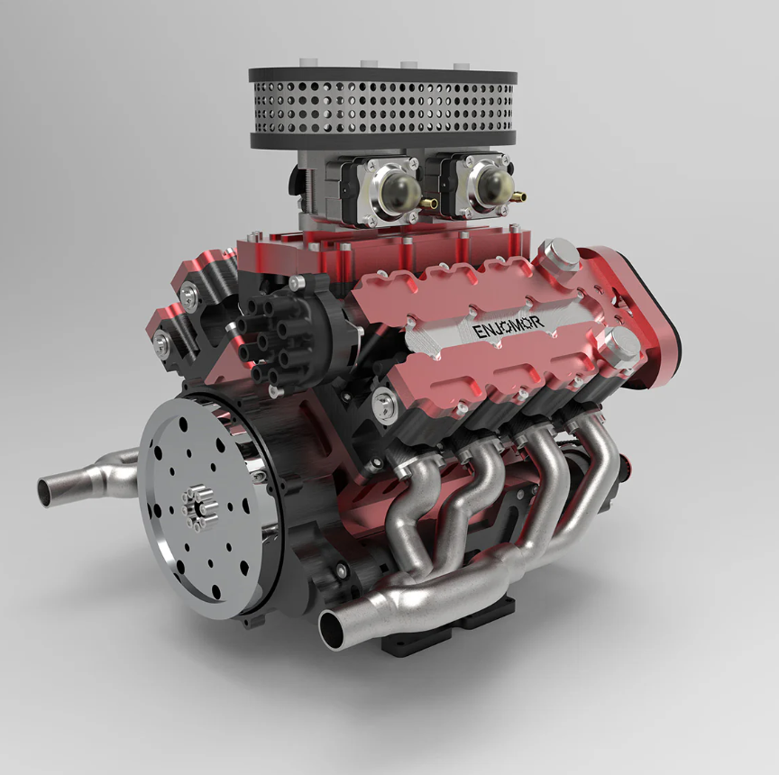 ENJOMOR V8 GS-V8 PRO 78cc DOHC Gasoline Engine with Starter Kit and Base – One Key Start