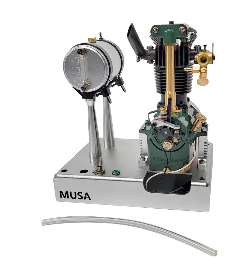 Exquisite Appearance: This miniature vertical single-cylinder four-stroke engine features a unique and beautiful appearance, green + black color scheme, OHV valve train and compact structure. .Ingenious Design: The engine parts have original and very delicate geometric shapes. For the pushrod-operated overhead valve, it has a very fine V-shaped arrangement.